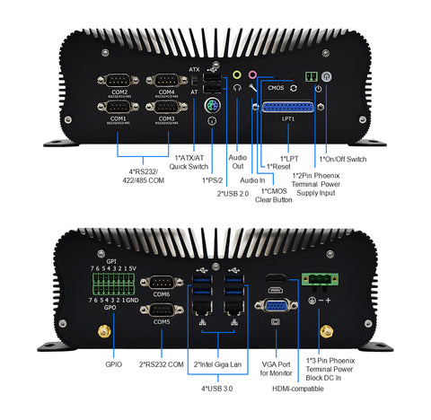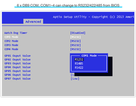 6 x COM Rs232(COM1-COM4 Rs232/422/485),