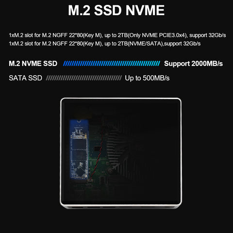 2*M.2 2280 NVMe/PCIe3.0x4 SSD(one also support M.2 SATA);