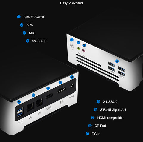 11th Gen Intel Mini PC i7 1165G7 i9 10980HK M.2 NVMe Office Computer Windows 11 PC Gamer NUC Dual Band WiFi HTPC 2xLan 6xUSB3.0